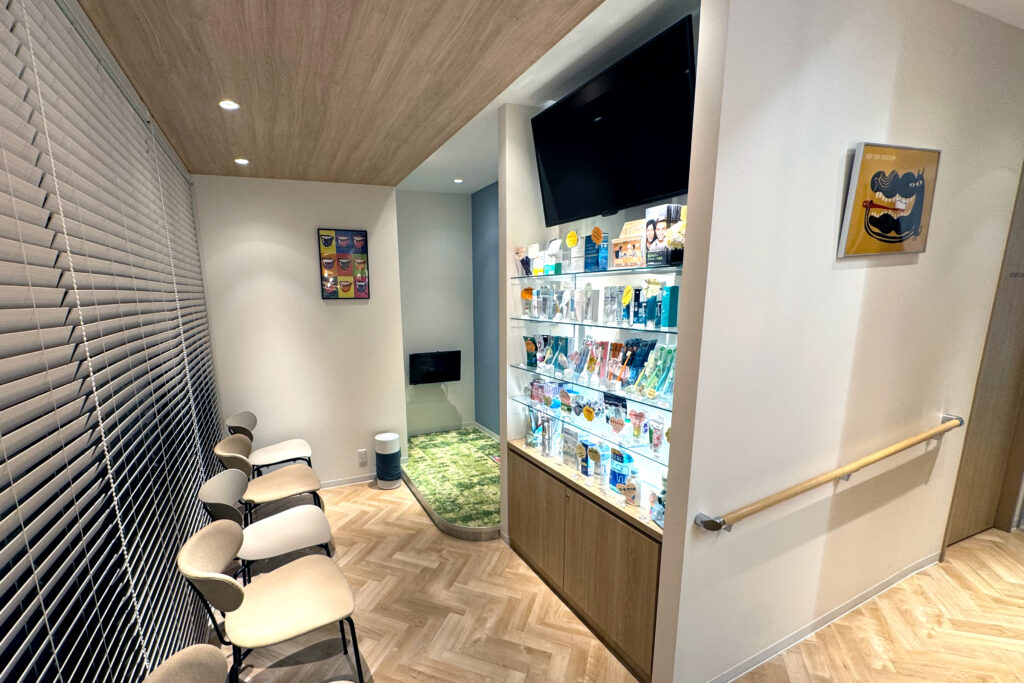 来院いただく患者様が不安な気持ちにならないよう、入ってすぐの受付ではスタッフが笑顔でお迎えいたしますので、不明点等ありましたらお気軽に受付スタッフまでお尋ねください。明るく清潔な待合室で、診療前の時間をリラックスしてお過ごしください。