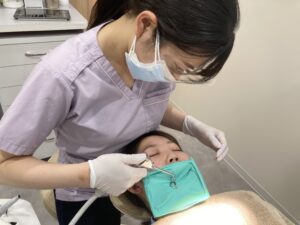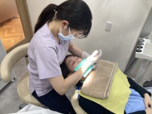 フッ素をしっかり歯に取り込ませるためには、まず歯の表面をきれいにすることがとても大切です。当院では、専門の器具を使って歯の表面についたプラーク(歯垢)や歯石、そして目に見えない細菌の膜であるバイオフィルムまで徹底的に取り除きます。このクリーニングによって、フッ素が歯の表面にしっかり浸透しやすくなります。